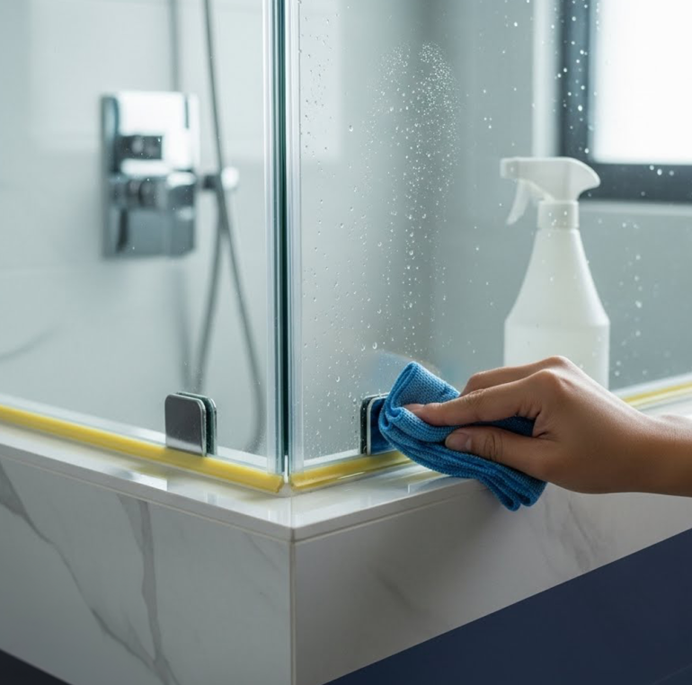 صيانة الكبائن الزجاجية وتنظيف السيليكون